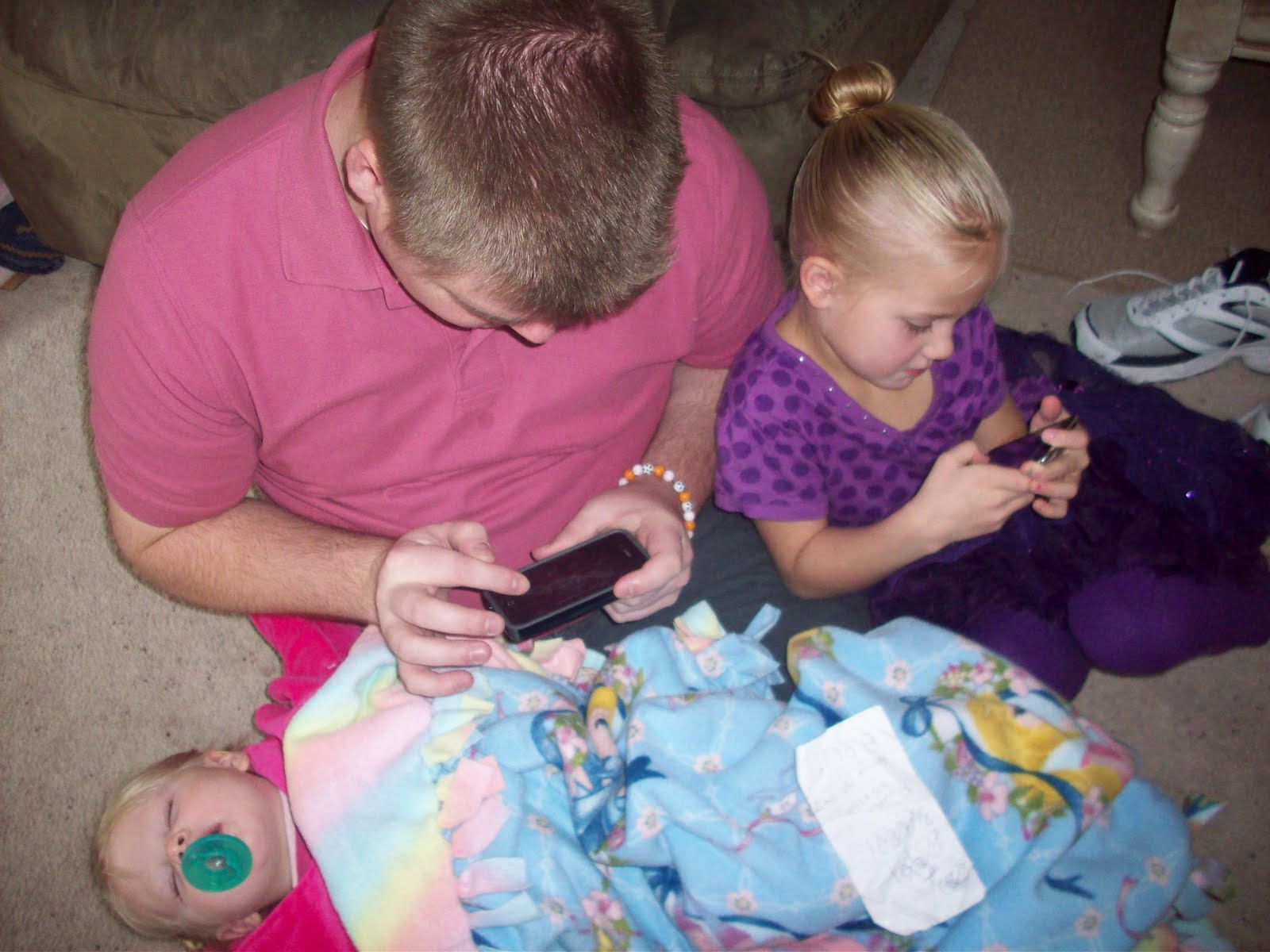 And here are my kids sporting their favorite gifts. Austin received a Max Hall and Jake Heaps card and can't put them down. Greta loves her new K'nex roller coaster, Alina loves her new jewelry box and Livvy Lou loves her baby doll.